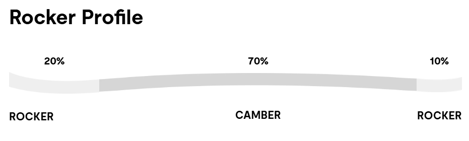Employ Extended Rocker, a reverse camber shape in the tip and tails, which along with waist width, is the most important element in providing float in fresh snow. Extended rocker also makes pivoting and turn initiation easier and means you have less chance of catching an edge.