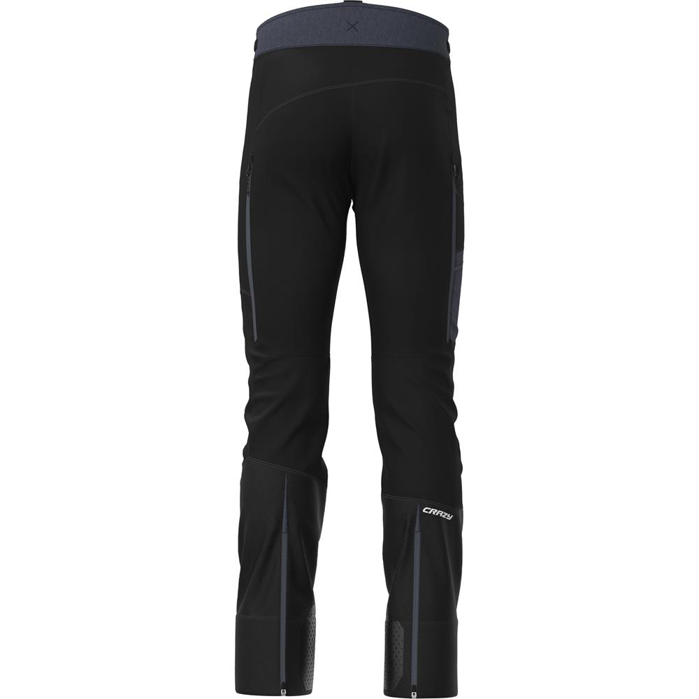 The Pant Neutron  for men is ideal for mountaineering or ski touring under extreme conditions. It is made of warm very elastic softshell with a windproof and highly water repellent membrane. The waistband with snap closure can be adjusted via elastic velcro fasteners on the sides and is equipped with loops for separately available suspenders. Five zippered pockets - two on the front, one on the right thigh and two on the side - can be used for additional ventilation.