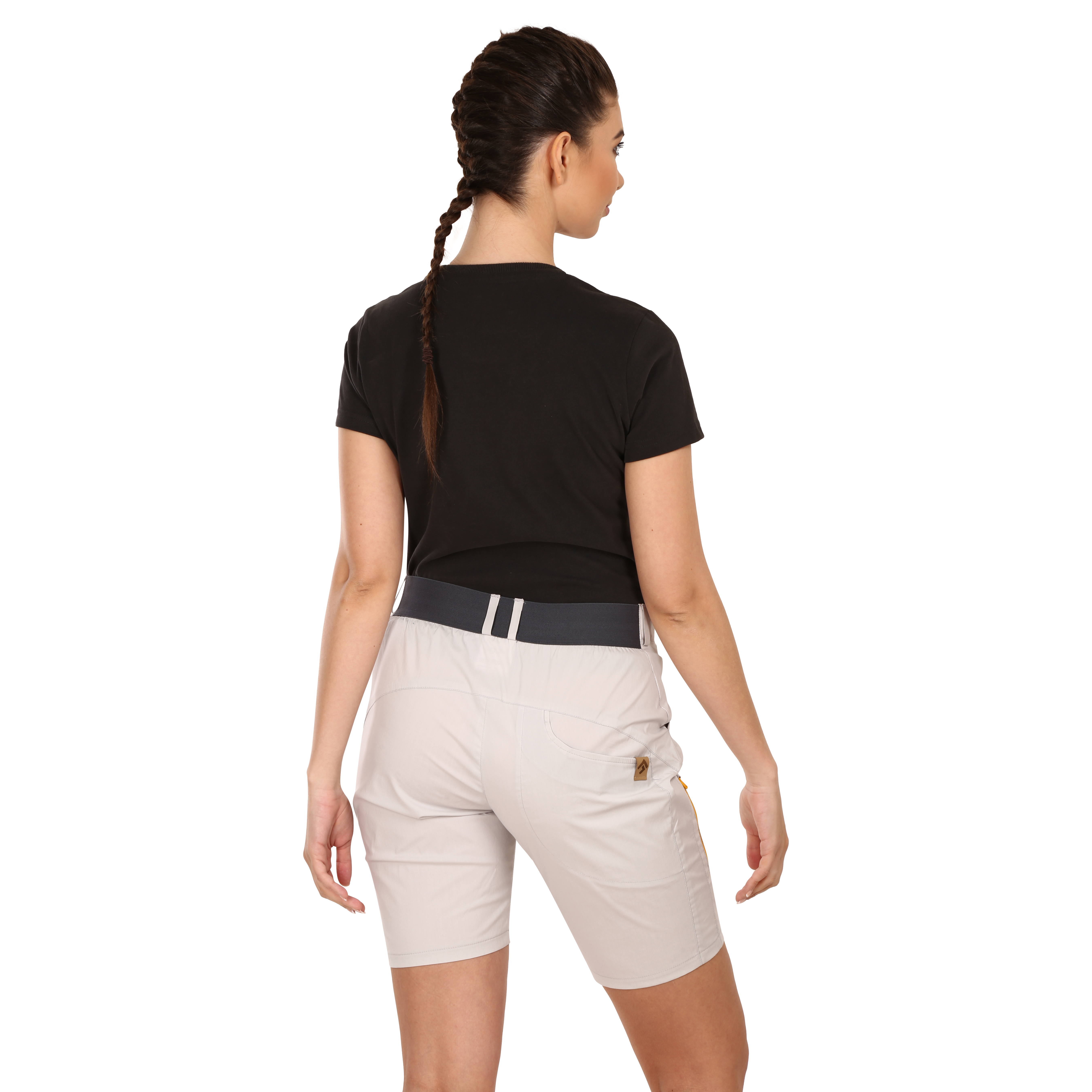 The waistband is engineered with an elastic back insert, allowing the shorts to adapt to your body without feeling tight. Belt loops are included so you can add a belt if desired. Multiple pockets are carefully placed — two pleated front pockets, one pleated back pocket, and a zippered thigh pocket for secure storage of small items. Reflective details improve visibility in low-light conditions.