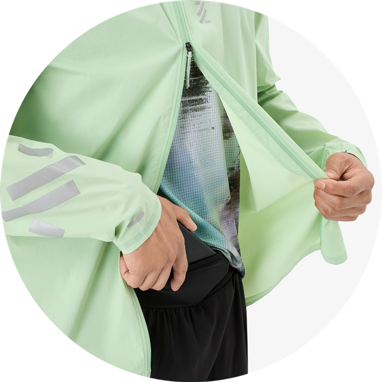 The Nnormal Trail Wind Jacket is an ultra-light, wind-resistant layer designed for trail running and outdoor activity. Made from 100% recycled, soft-touch polyester and weighing just around 123 g, it offers excellent packability and freedom of movement. A two-way front zipper allows quick ventilation control, while reflective details ensure visibility in low light. With an adjustable hood and a stowable design that folds into its own pocket, it’s a versatile choice for unpredictable weather on the trail.