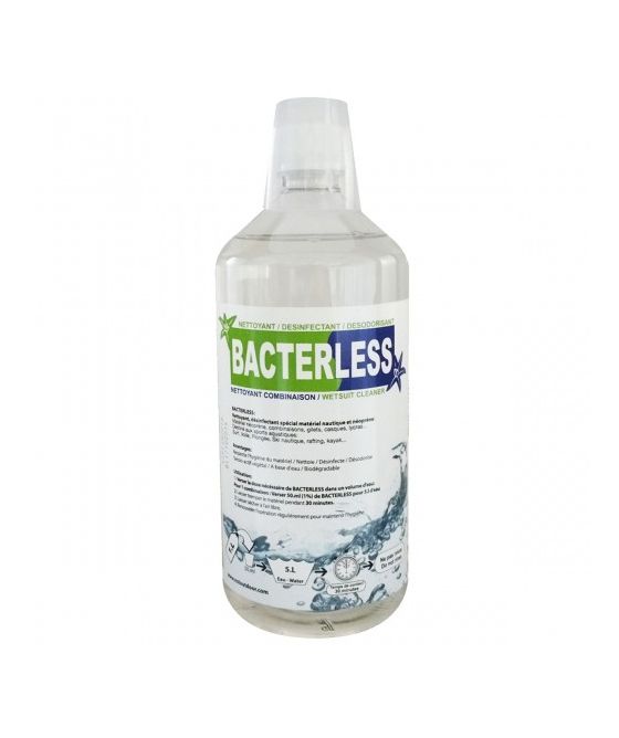 BACTERLESS Wetsuit Cleaner est un nettoyant désinfectant pour tous les vêtements néoprène et matériel nautique. Il offre + de confort et respecte l’hygiène dans tous les sports nautiques.