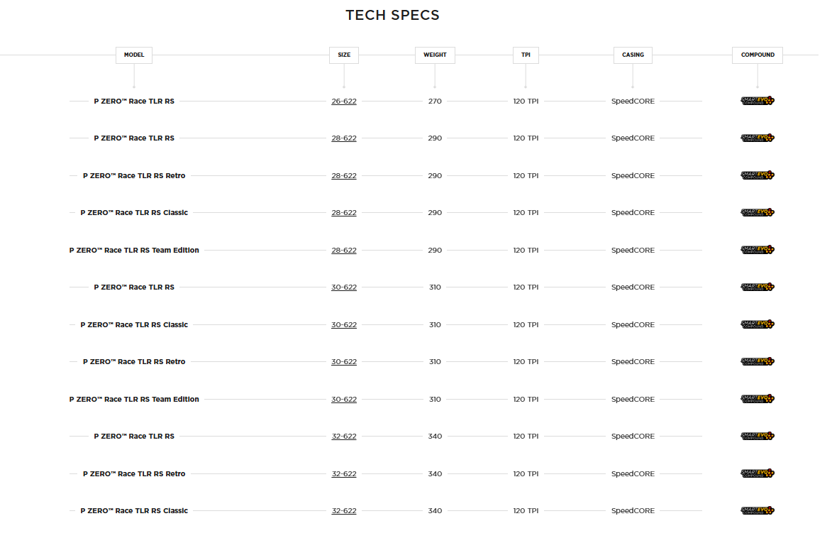 The P ZERO™ Race TLR RS represents the latest addition to the range of P ZERO™ Race road racing tires, made in Italy. It has been developed in collaboration with professional athletes from their World Tour teams to deliver superior speed and grip performance compared to any other tire they have created. This achievement is made possible by the new SmartEVO² compound, formulated with the know-how and latest materials used in Motorsport, ensuring further improvement in grip and handling on both dry and wet surfaces. Additionally, they have lightened the patented SpeedCORE™ structure, featuring a thin, hermetic layer of rubber compound enriched with aramid particles. The combination of these factors has made it possible to create a high-performance tire that is even faster for competitors, but also for those who wish to benefit from the same tech as the pros.