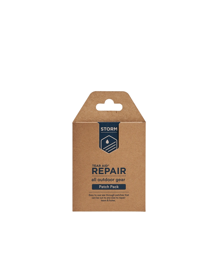 Storm Tear‑Aid Patch is an easy‑to‑use repair kit featuring transparent waterproof patches and tape that mend holes and rips in outdoor gear.